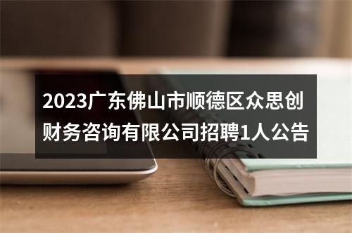 【2023广东佛山市顺德区众思创财务咨询有限公司招聘1人公告】相关岗位: