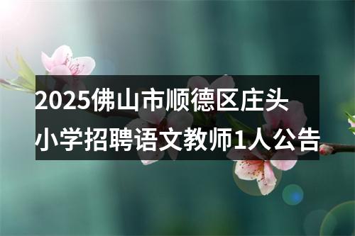 声明:专注 2025佛山市顺德区庄头小学招聘语文教师1人公告 相关岗位分析;专业指导面试技巧;保障就业成功概率。