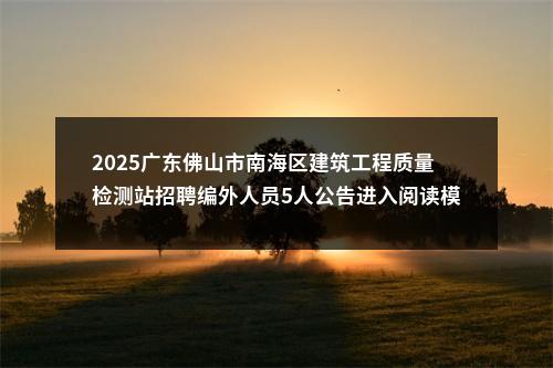 【2025广东佛山市南海区建筑工程质量检测站招聘编外人员5人公告进入阅读模式】相关岗位:
