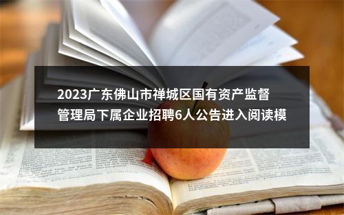 佛山市禅城区国有资产监督管理局下属企业拟面向社会公开招聘工作人员6名,现将有关事项公告如下: