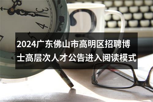 原标题:2024年佛山市高明区公开招聘博士高层次人才公告
