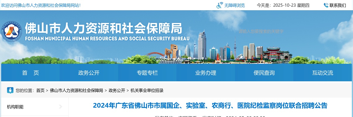 原标题:2024年广东省佛山市市属国企、实验室、农商行、医院纪检监察岗位联合招聘公告