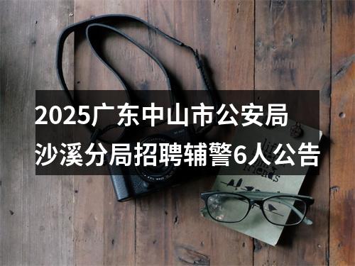 【2025广东中山市公安局沙溪分局招聘辅警6人公告】相关岗位:
