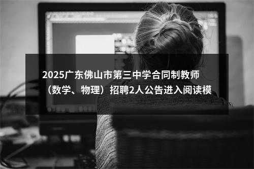 原标题:2025年佛山市第三中学合同制教师(数学、物理)招聘公告