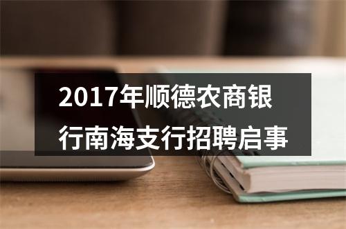 【2017年顺德农商银行南海支行招聘启事】相关岗位: