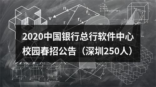 声明:专注 2020中国银行总行软件中心校园春招公告(深圳250人) 相关岗位分析;专业指导面试技巧;保障就业成功概率。