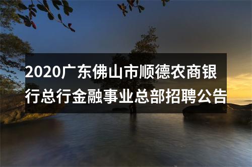 【2020广东佛山市顺德农商银行总行金融事业总部招聘公告】相关岗位: