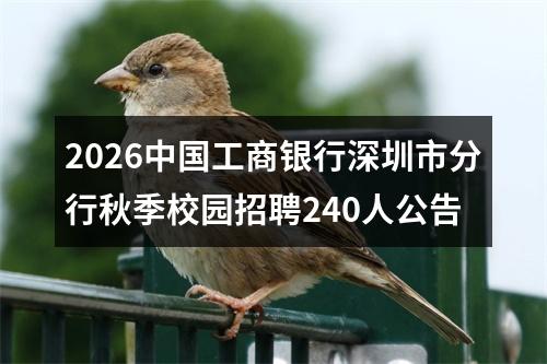 【2026中国工商银行深圳市分行秋季校园招聘240人公告】相关岗位:
