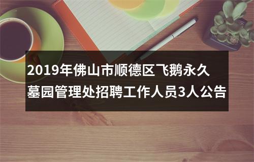 招聘公告汇总 备考辅导课程 备考活动汇总公益岗招聘:2019年佛山市顺德区飞鹅永久墓园管理处招聘工作人员3人公告已发布。本文为广大参加备考社会公益岗考试的考生朋友提供2019年佛山公益岗招聘公告!更多广东公益性岗位招聘考试信息,请点击佛山公益岗招聘考试网。