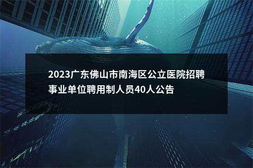 佛山市南海区公立医院公开招聘2023年事业单位聘用制工作人员公告