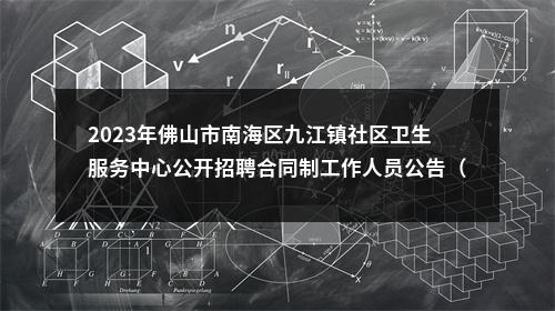 原标题:佛山市南海区九江镇社区卫生服务中心2023年公开招聘合同制工作人员公告(第二批)